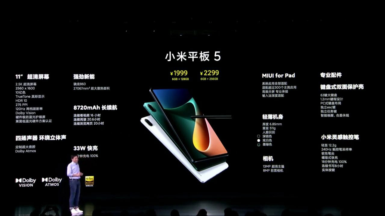 خب، ابتدا از گل سرسبد این مجموعه شروع میکنیم. شیائومی می پد ۵ پرو، تبلت پرچمدار شیائومی است. متأسفانه باید بگوییم که این تبلتها تنها در کشور چین عرضه میشوند و خبری از عرضه جهانی آنها نیست. می پد ۵ پرو دارای نمایشگری تقریباً ١١ اینچی با وضوح 2K، قابلیت نمایش بیش از ١ میلیارد رنگ و محتوای HDR10 و رفرش ریت ١٢٠ هرتزی به همراه نرخ حساسیت لمسی ٢۴٠ هرتزی است. کنتراست این پنل که از نوع IPS LCD است، برابر با ١,۵٠٠:١ میباشد. این تبلت ویژه، دارای ٨ عدد اسپیکر است! اسپیکرهای این تبلت، دارای فناوریهایی از جمله Dolby Atmos و Hi-Res Audio میباشند. گفتنی است که شیائومی این تبلت را در بخش نمایشگر، برتر از iPad Pro میداند!