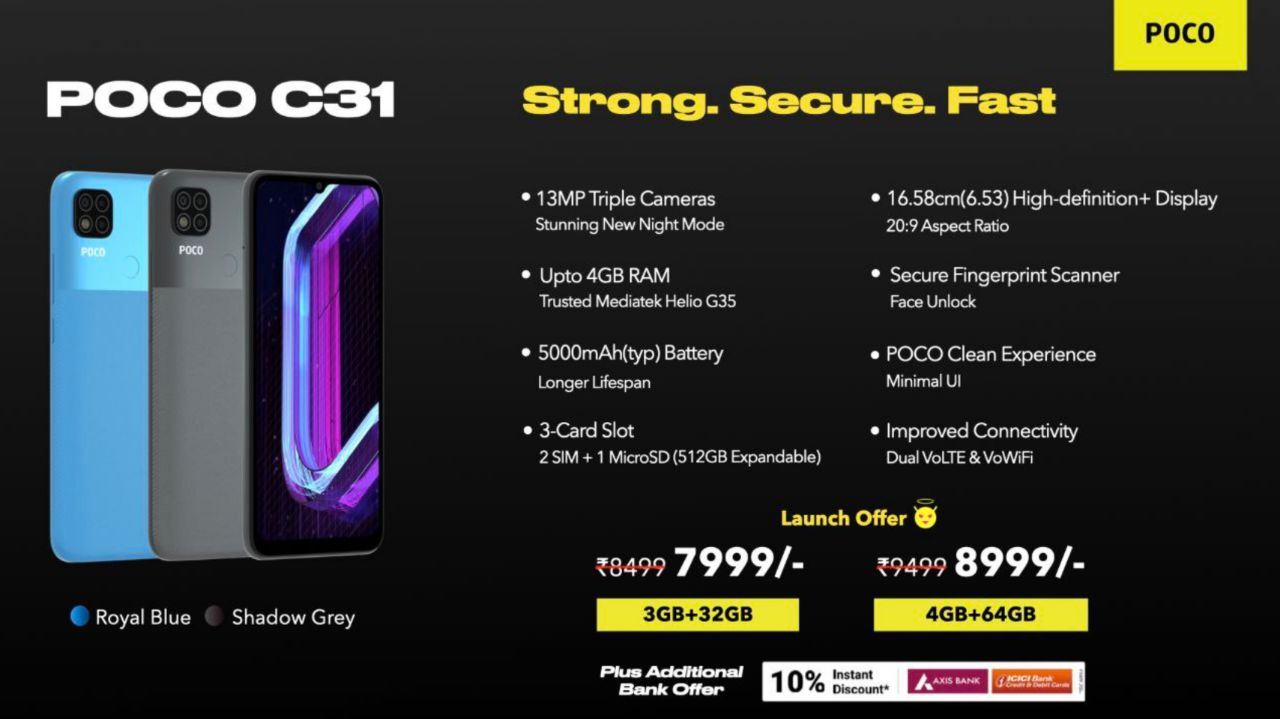 پوکو C31 شیائومی رسماً معرفی شد: همان Poco C3 با حسگر تشخیص اثرانگشت!